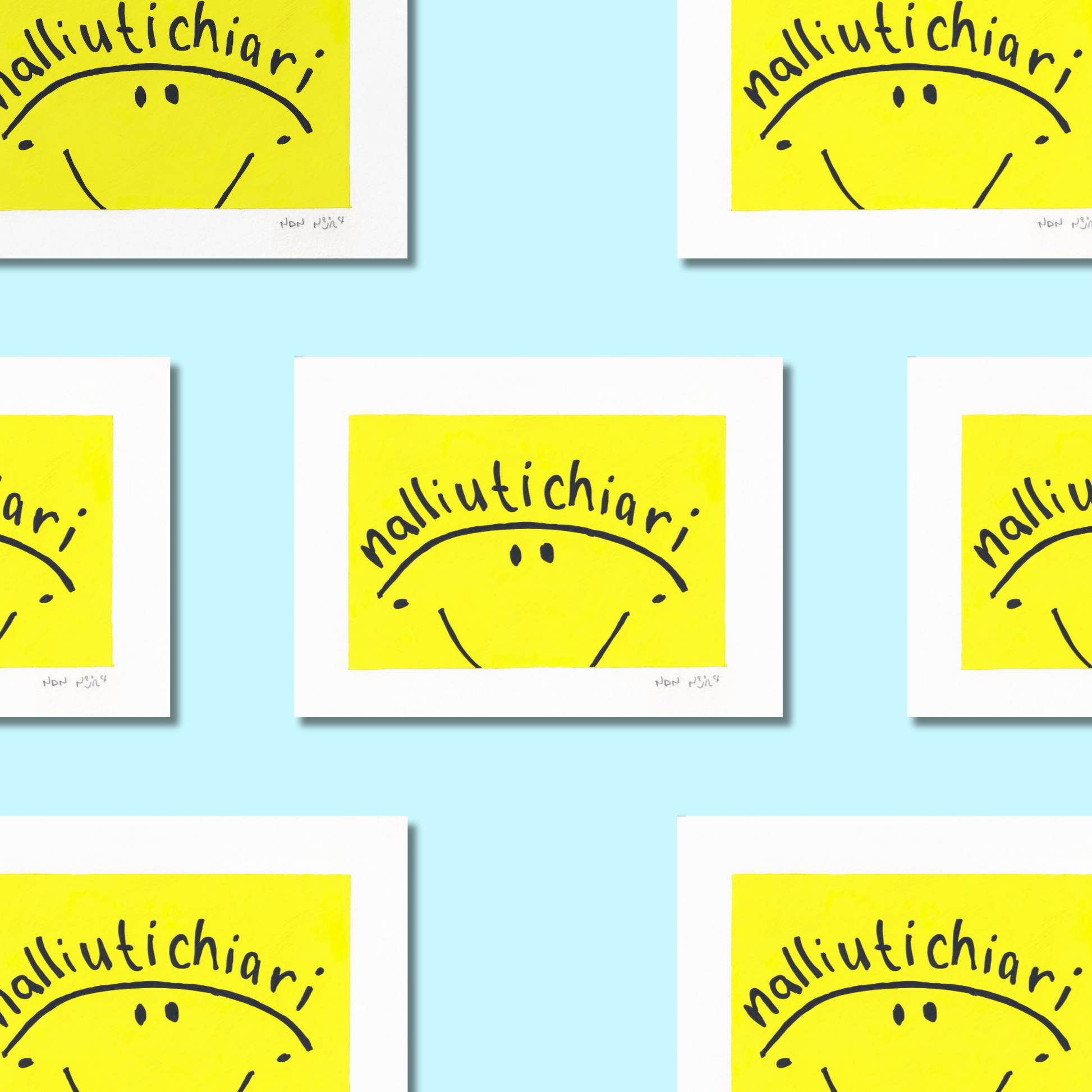 "Nalliutichiari" means Happy Birthday in Inuktitut — a cheerful, hand-painted design brought to life through high-quality printed reproduction. Its bright yellow background and playful smile make it the perfect way to celebrate someone special.